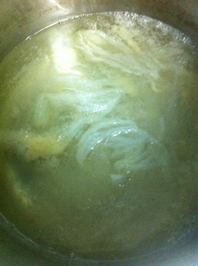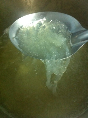ต้มไปเคี้ยวไปจนกว่าเนื้อรังจะเปลี่ยนเป็นสีใสๆ นะครับ ตามรูปเลย
