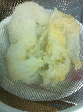 2. แช่ทิ้งไว้6-8ชั่วโมง รังนกจะออกมาหน้าตาแบบนี้นะครับ