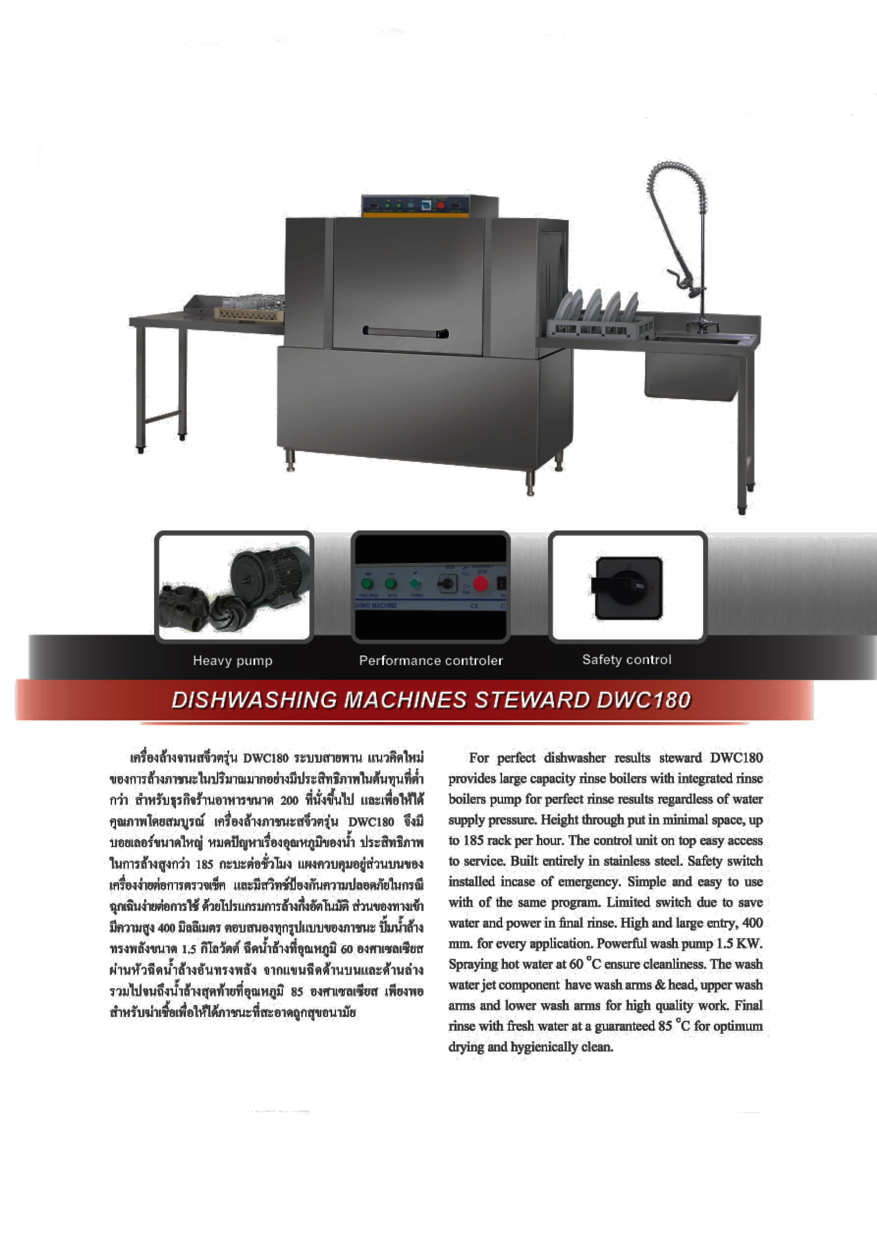 เครื่องล้างจานขนาดใหญ่ ระบบสายพาน DWC180