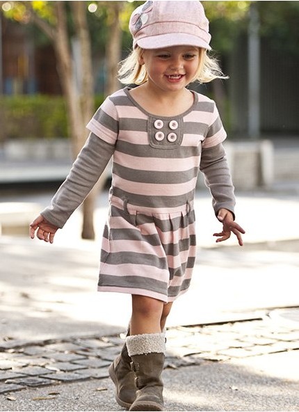 ชุดกระโปรงลายทางสีชมพู - เทา เสื้อแขนต่อเป็นชุดแขนยาว ใส่แล้วอุ่นกำลังดีค่ะ เนื้อผ้าคอตตอนนุ่มสบาย สินค้ามี 5 ไซส์ 80-90-100-110 และ 120 ค่ะ