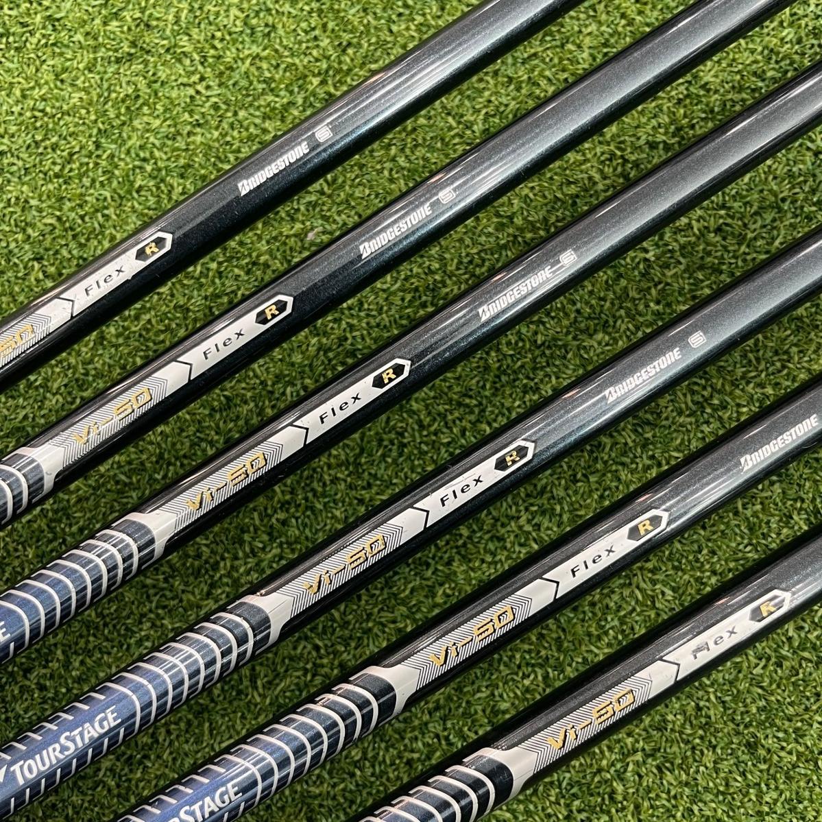 IRON SET TOURSTAGE VIQ ( 2008 ) 6S ก้าน TOURSTAGE VI-40 FLEX R เทคโนโลยี่หน้าไม้ เป็นวัสุดไทเทเนี่ยม ที่ช่วยเพิ่มสปีดบอลออกจาก หน้าเหล็กได้เร็ว เเละไกลขึ้น พร้อมการถ่วงน้ำหนัก ของใบ โคนเเละปลาย ช่วยเพิ่มค่า MOI ไม้ได้สูงสุด มีเหล็กจำนวน 6 ชิ้น 5 6