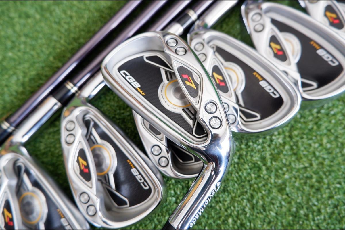 IRON SET TAYLORMADE R7 CGB MAX ก้าน TAYLORMADE RE AX BLACK STEEL 90g FLEX R ซึ่งใช้เทคโนโลยีหน้าไม้ช่วยให้ตีง่าย ชดชดเชยเรื่องของระยะ ที่ไกลขึ้น เเละประกับองศาหน้าไม้ที่ชดเชย LOFT ให้น้อยลงจึงทำให้เหล็กชุดนี้ตีได้ไกล ใบเหล็กมีการออกแบบให้มีร่อง Cavity อยู