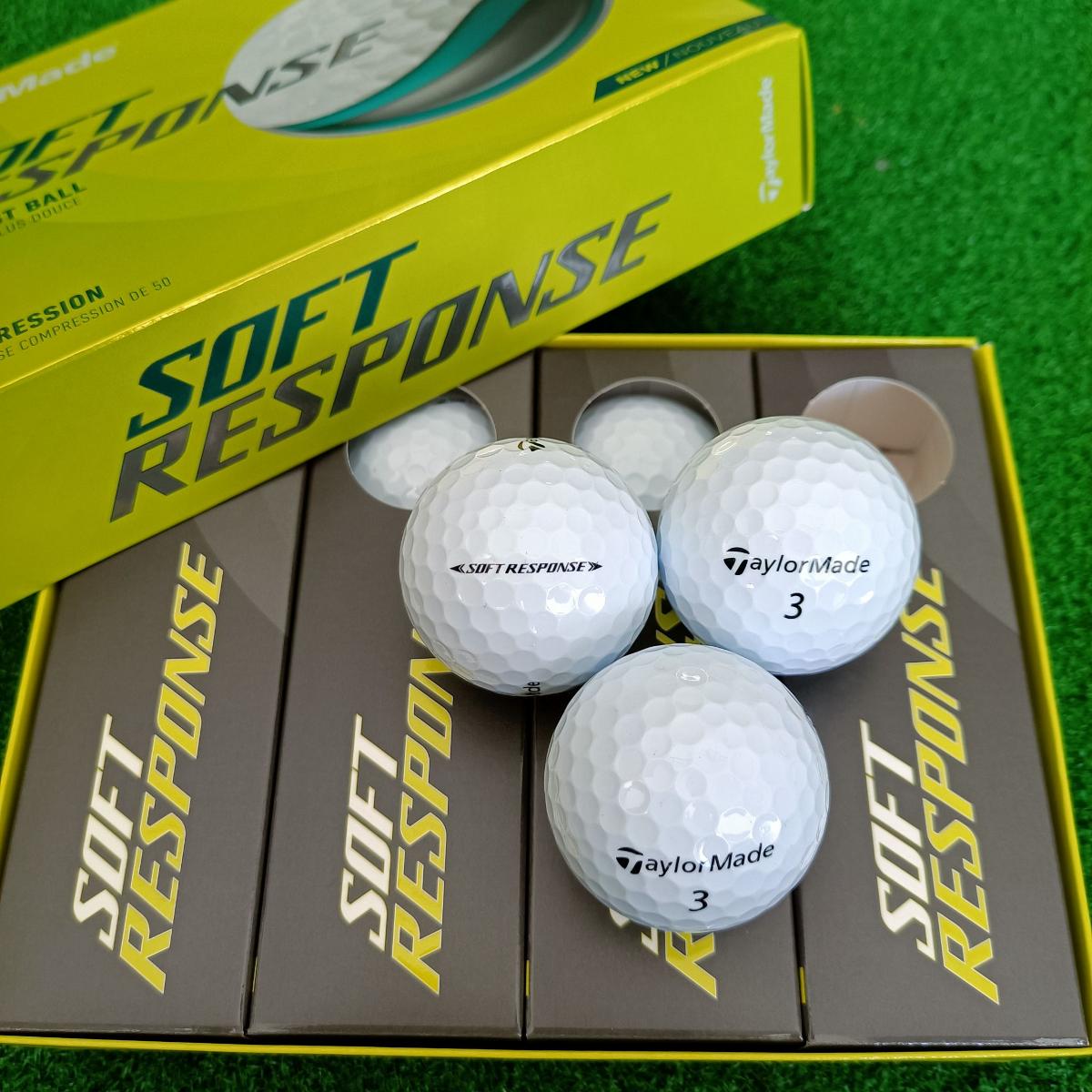SOFT RESPONSE GOLF BALLS Soft Response ออกแบบมาสำหรับผู้เล่นที่มีความเร็วสวิงปานกลางด้วยแกนใหม่ที่นุ่มกว่าและฝาครอบไอโอโนเมอร์ที่ออกแบบใหม่เพื่อเพิ่มการหมุนในกรีนไซด์ การเปลี่ยนแปลงนี้จะทำให้คุณได้ลูกที่นุ่มนวลขึ้นด้วยการบีบอัดโดยรวม 50 (เทียบกับอัตรากา