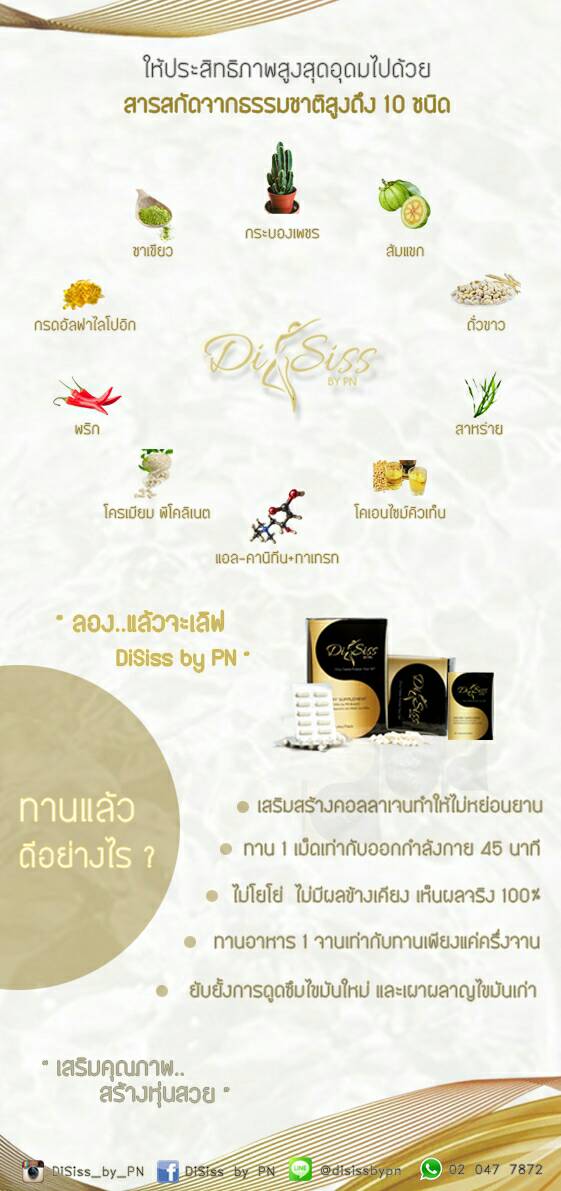 อาหารเสริม disiss 1 เม็ดเท่ากับออกกำลังกาย 45 นาที ยับยั้งการดูดซึมไขมัน ผอมและขาว ไม่โทรมไม่โยโย่