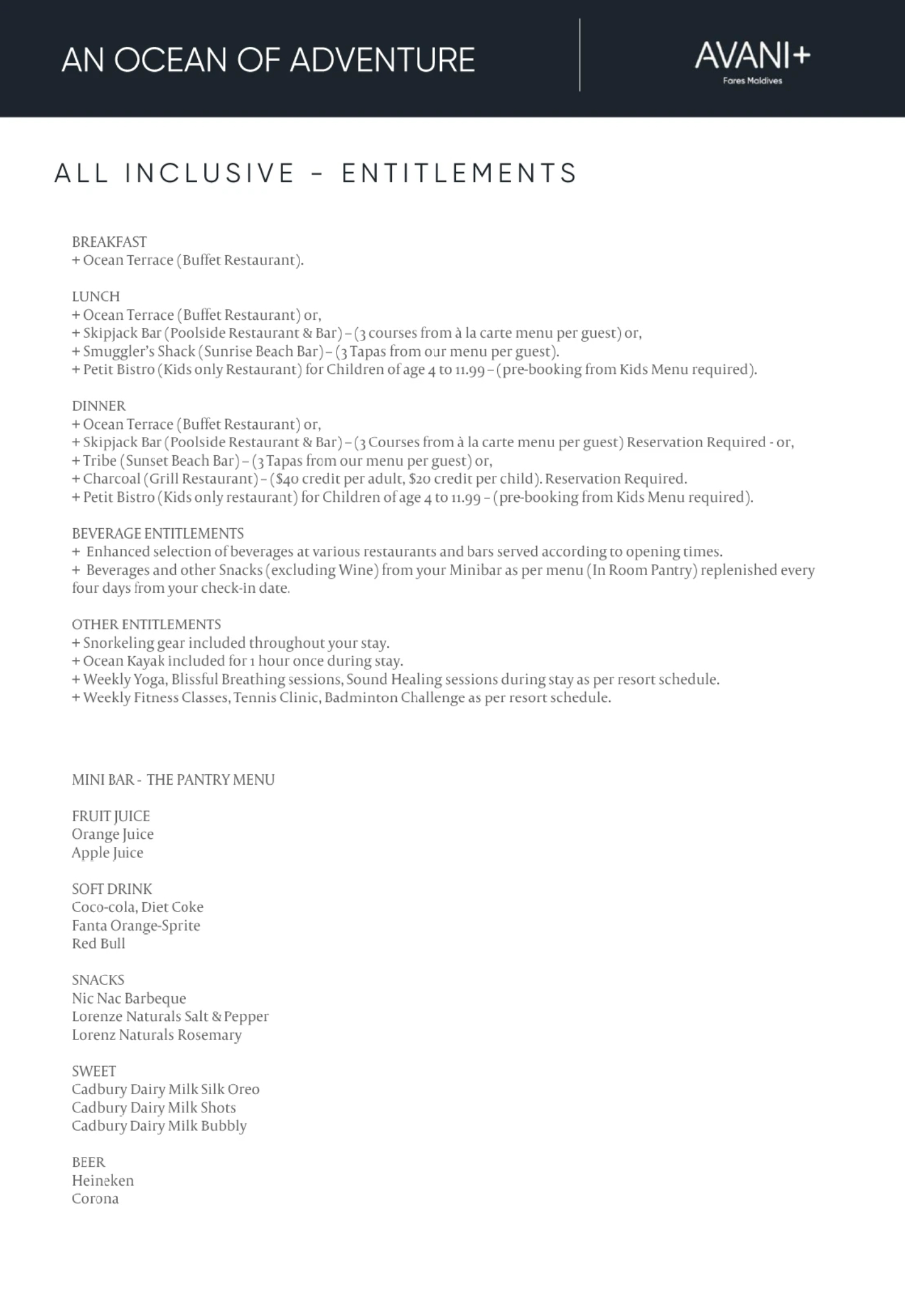 รีสอร์ทน้องใหม่ล่าสุด AVANI+ FARES MALDIVES ในเครือ Minor ที่ตั้งอยู่ใน Baa Atoll พื้นที่อนุรักษ์พันธุ์สัตว์น้ำของ UNESCO ซึ่งเป็นบริเวณที่มีชื่อเสียงในการดำน้ำตื้นกับ Manta Rays หรือฉลามวาฬอีกทั้งยังตั้งอยู่ใกล้กับร่องน้ำที่จะมีโอกาสเห็นโลมาว่ายผ่านมาได้อีกด้วยรีสอร์ท AVANI+ FARES MALDIVES ให้บริการทั้งห้องบนหาดและห้องกลางน้ำสามารถรองรับทั้งการเดินทางกลุ่มขนาดเล็กและขนาดใหญ่ทั้งแบบคู่รักกลุ่มเพื่อนครอบครัวที่มีเด็กแถมยังมีหลาย meal plan ให้เลือกไม่ว่าจะเป็น Bed & Breakfast, Half Board, Full Board, All Inclusive พร้อมเครื่องดื่มไม่มีแอลกอฮอลล์ หรือ All Inclusive พร้อมเครื่องดื่มมีแอลกอฮอลล์อีกด้วย นับเป็นอีกรีสอร์ทที่ได้เปิดตัวมาตอบโจทย์ผู้ที่ชื่นชอบประเทศมัลดีฟส์ค่ะ