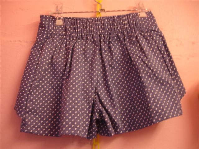 กางเกงขาสั้นเอวยืด สีฟ้า polka dot