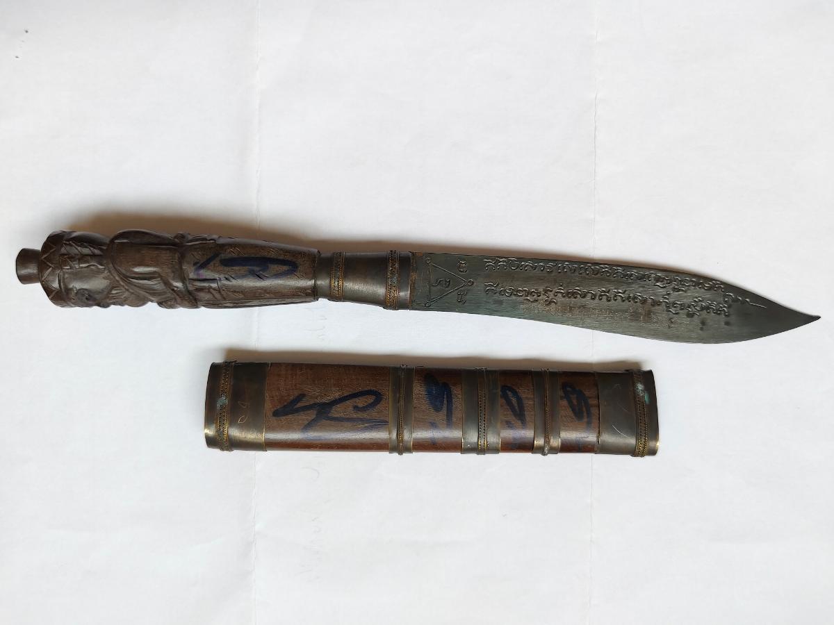 มีดครูด้ามพ่อปู่ฤๅษี ด้ามไม้ฝักไม้ วัดเลียบบำรุงราษฎร์ ปี2539 สร้างน้อย 108 ด้าม หลวงปู่สรวงร่วมเสก มีรอยจารรอยเจิม เดิมๆสุดขลัง สวยสุดหายากมาก