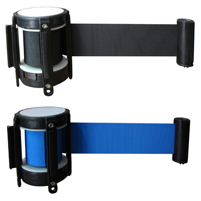 เสากั้นทางเดิน แบบดึงกลับ รูปทรงกะทัดรัด และทันสมัยง่ายต่อการจัดเก็บ ตัวเสาผลิตเหล็กเคลือบสีดำ สายผ้ากั้นเป็น ผ้าพอลอิเอ็ชเทอะ (Polyester)สารประกอบที่ ทำวัตถุหลอมเหลว) ทนต่อการใช้งาน
