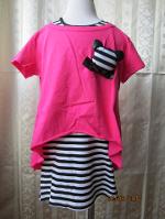 ชุดเสื้อแขนเต่อสุดล้ำ ด้านหน้าเป็นผ้าลายทางหลากสีสดใส ชายข้างหน้าเว้าสูง เนื้อผ้าบางสบาย จับคู่กับประโปรงยืนติดระบายลูกไม้ที่ชาย มีโบว์ประดับมุก ใส่แล้วดูหรูหรามีระดับ สั่งด่วนเลยค่ะ ขายดีมากๆ