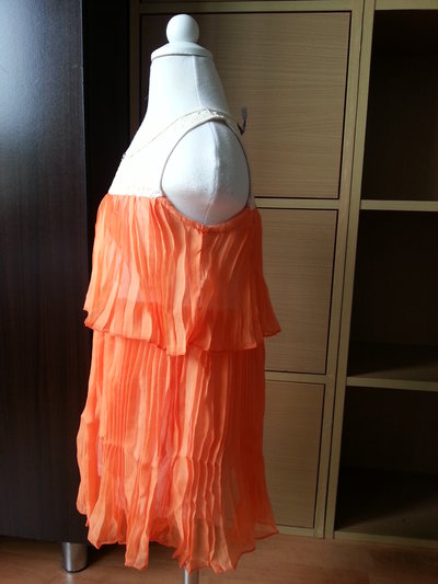 รายละเอียด: ชุดเดรสแขนกุดสุดพริ้วสีส้มสดใส ชุดเดรสเป็นคอกลม แต่งคอด้วยผ้าลูกไม้ ตั้งแต่ใต้อกลงไปต่อด้วยผ้าชีฟองสีส้มสดใส จับจีบรอบตัวเป็นชั้นๆ ใส่แล้วรับรองพริ้วสุดๆ ข้างในมีซับในไม่โป๊แน่นอนจ้า