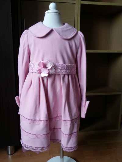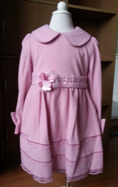 รายละเอียด: ชุดเดรสเจ้าหญิงสีชมพูแสนหวาน ตัวเดรสเป็นคอบัว แขนยาวแต่งโบว์ที่ปลายแขน ด้านหน้ามีเข็มขัดดอกไม้คาด ชายกระโปรงแต่งระบายลูกไม้ ด้านหลังมีซิปและมีเชือกตรงเอวสามารถผูกเป็นโบว์ได้จ้า