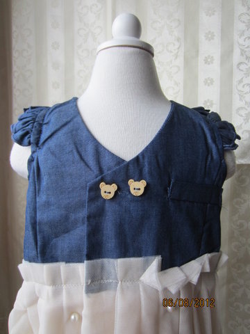 รายละเอียด: ชุดกระโปรงน้องหมีน่ารัก ตัวเสื้อเป็นผ้ายีนส์สวมใส่สบาย ส่วนตัวกระโปรงเป็นผ้าชีฟองสีครีมเนื้อนุ่ม แต่งระบายที่แขน ด้านหน้าแต่งกระดุมลายน้องหมี ใส่แล้วรับรองน่ากสุดๆจ้า