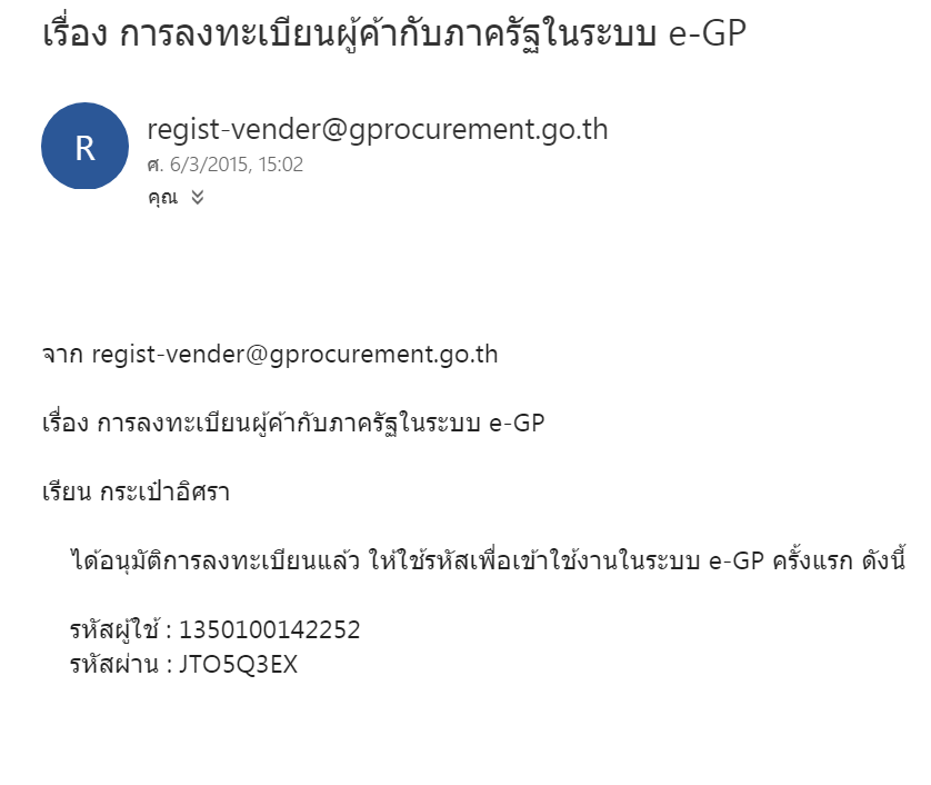 ลงทะเบียน E-GP เรียบร้อยแล้ว