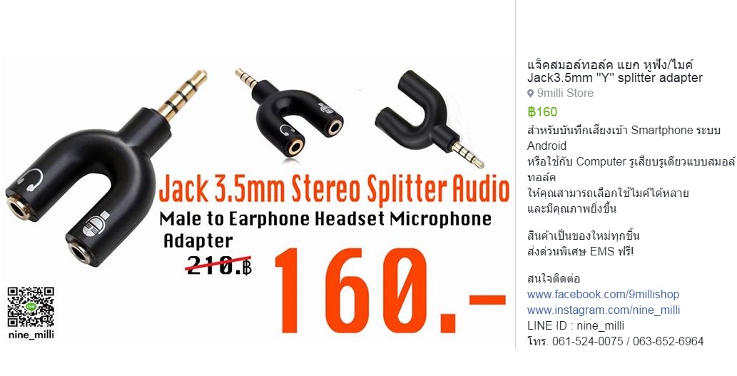 Jack3.5 สมอล์ทอล์ค แยก หูฟัง/ไมค์ แบบสาย Y
