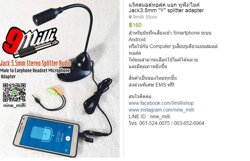 สำหรับอัดเสียงเข้าsmartphone ระบบ android หรือใช้กับ computer ที่มีรูเสียบแบบสมอล์ทอล์ค ช่วยให้สามารถเลือกใช้ไมค์ในการอัดเสียง ได้หลาย และมีคุณภาพยิ่งขึ้น