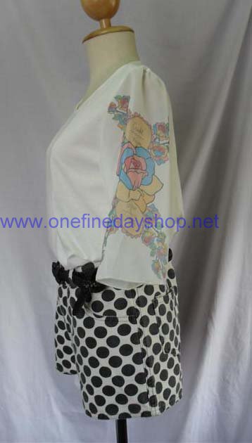 กางเกงยีนส์ เอวสูง ขาสั้น size XL ลาย polka dot พื้นขาวจุดดำ รหัสสินค้า-spt277