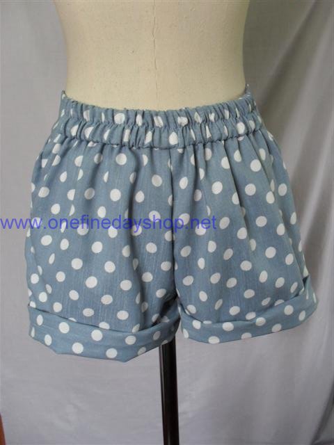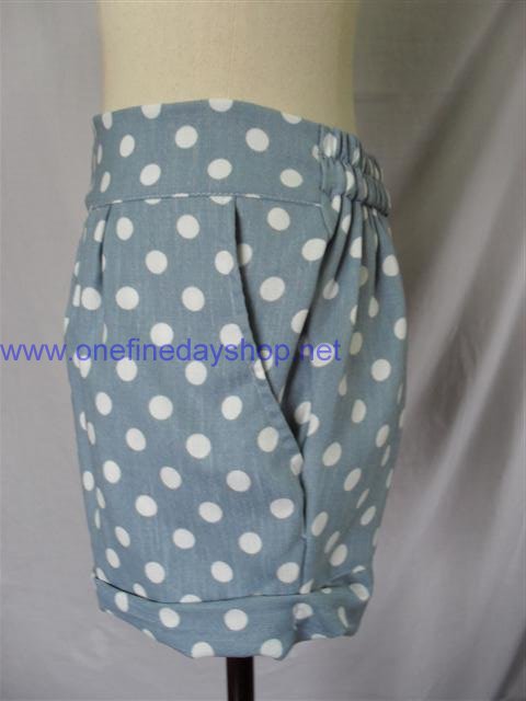 กางเกงขาสั้นเอวยืด สีฟ้า polka dot