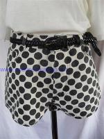 กางเกงขาสั้นเอวยืดลาย polka dot ด้านหน้าตกแต่งด้วยโบว์ดูน่ารักค่ะ....จะใส่เป็นเอวสูงหรือเอวต่ำก็ได้นะคะ ขนาด สะโพก 40 ยาว 12.5 เอว 36 ค่ะ