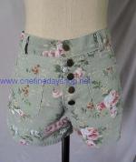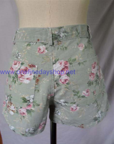 กางเกงขาสั้น เอวสูง ทรงเดียวกับ The Dude พื้นสีเขียว ลายดอกไม้ vintage style รหัสสินค้า : spt276ขนาด เอว 31 สะโพก 40 ยาว 12 ขากว้าง 24 นิ้ว