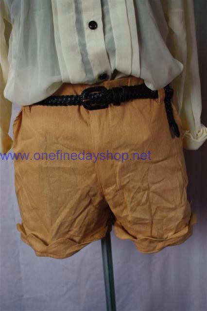 กางเกงขาสั้นเอวสูงทรง top shop ด้านหลังเป็นยางยืด ด้านหน้ามีกระดุ 4 เม็ด