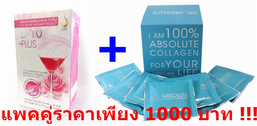 แพคคู่ DR.Absolute Collagen คอลลาเจนผงบริสุทธิ์ 100 เปอร์เซ็นต์ +D-10+ ดีเท็นพลัส คอลลาเจน